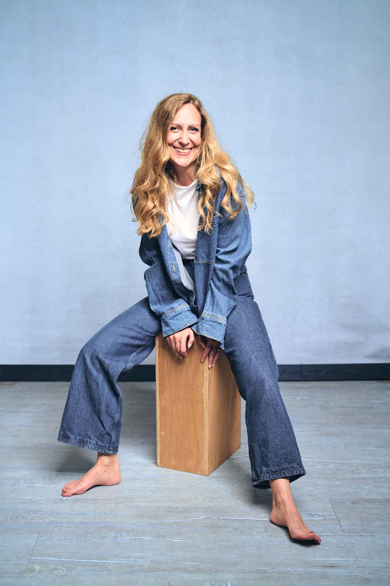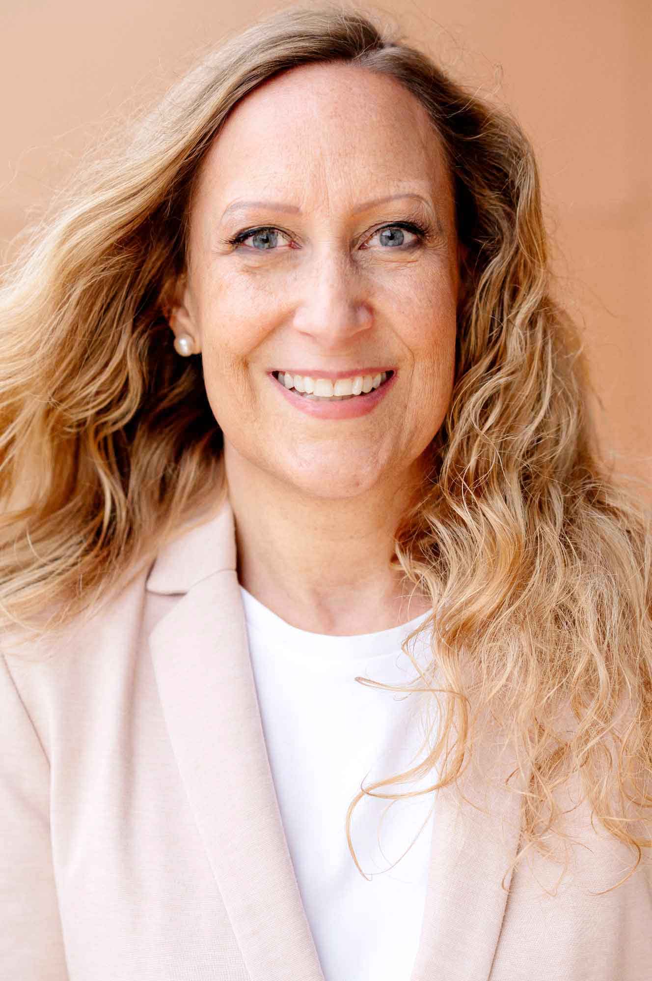 Classic Beauty mit modernem, jungem Twist. Blonde, wellige Haare, freundliches Lächeln, klare Mimik und präsente Augen